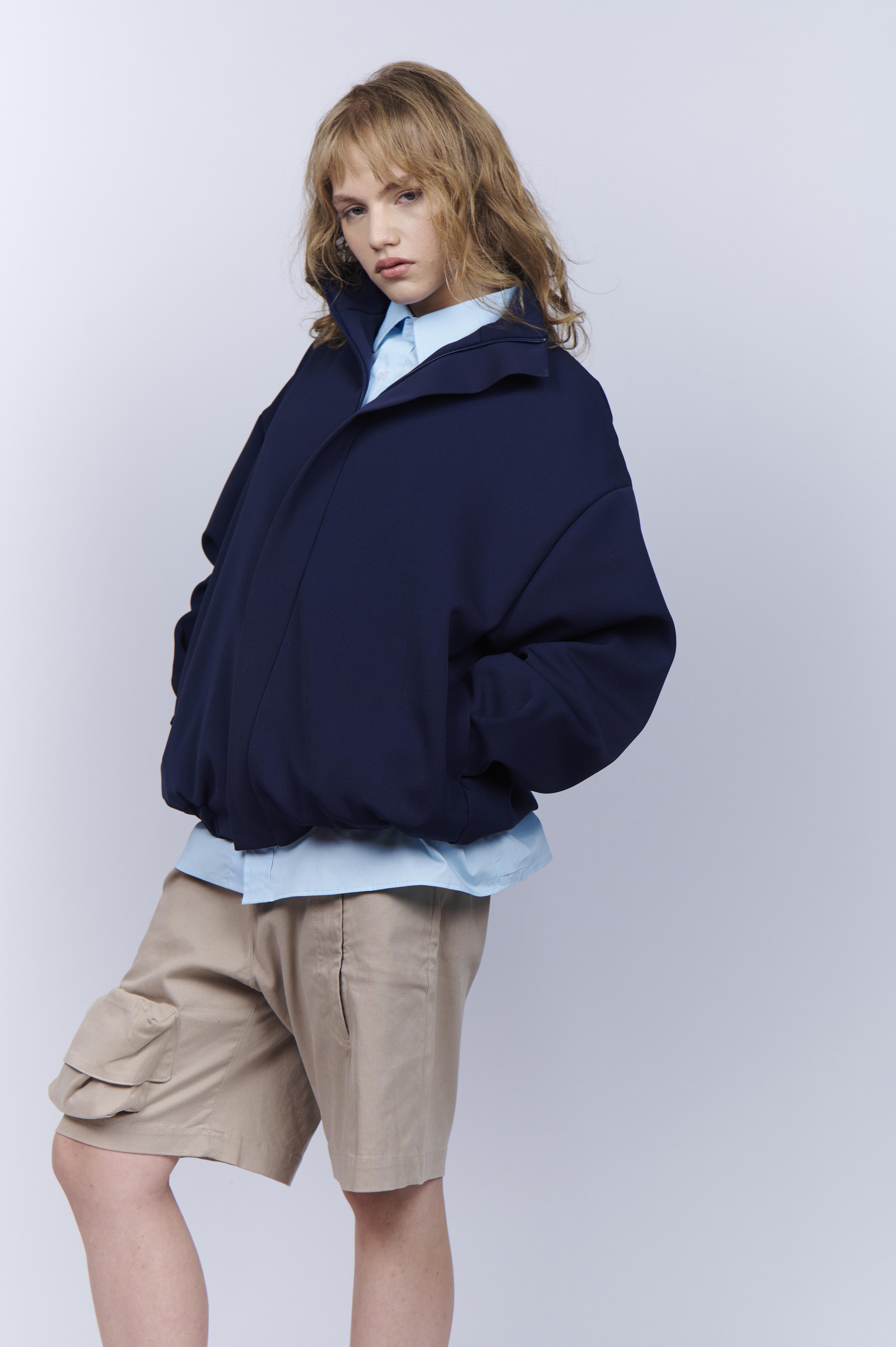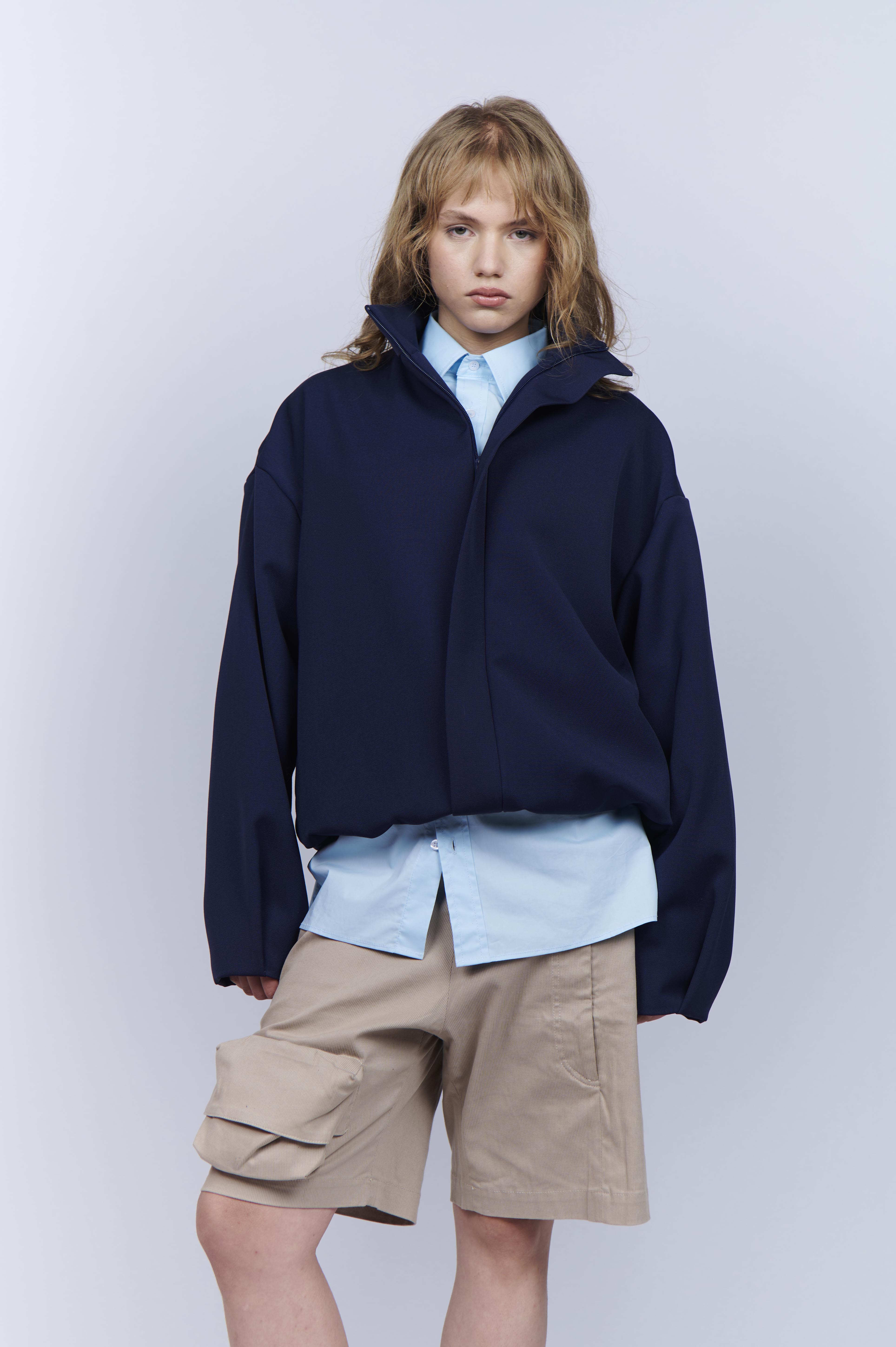 Campera en Casimir de Lana azul marino con cuello tortuga.