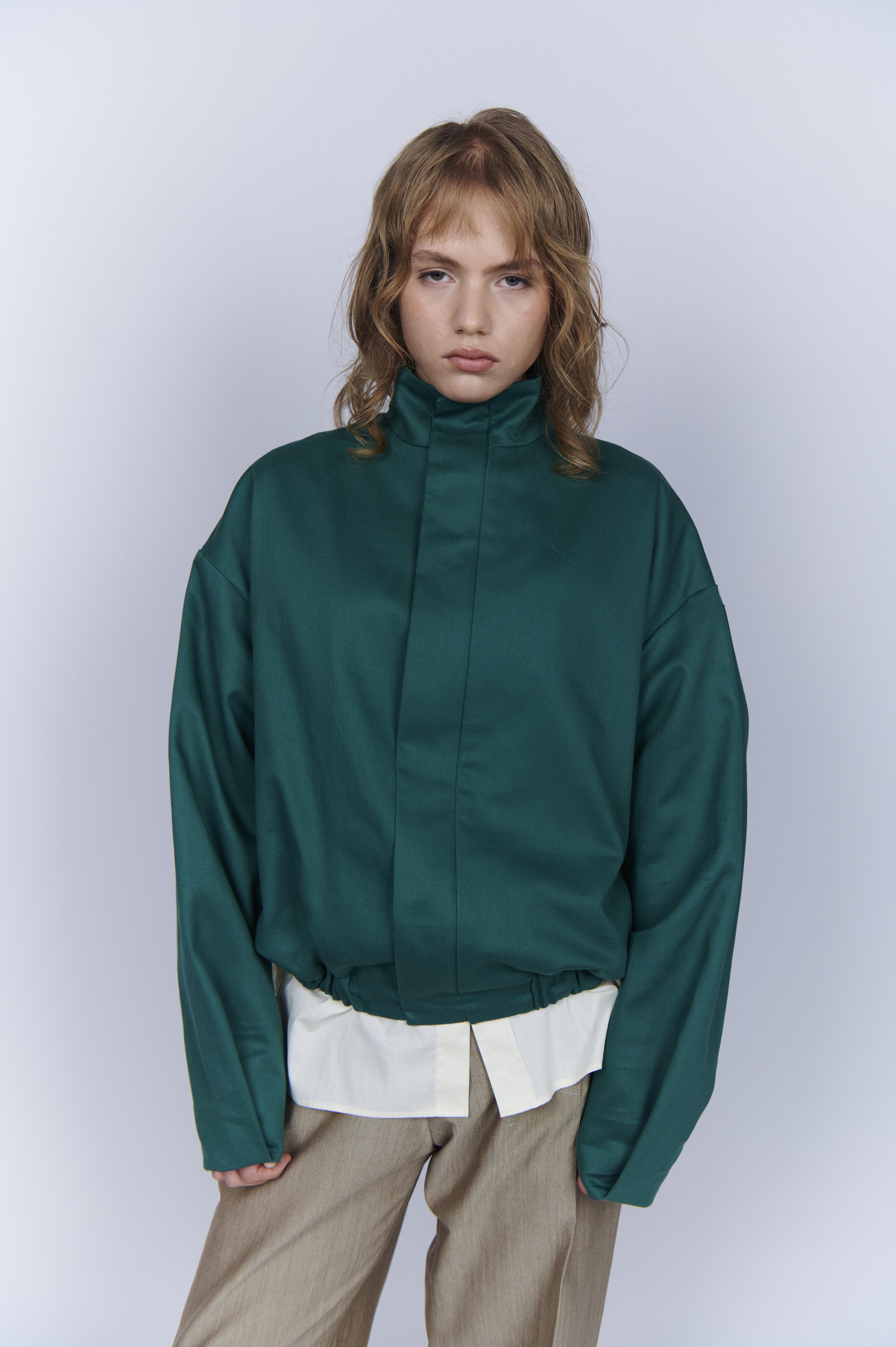 Campera de gabardina 100% algodón con cuello tortuga.